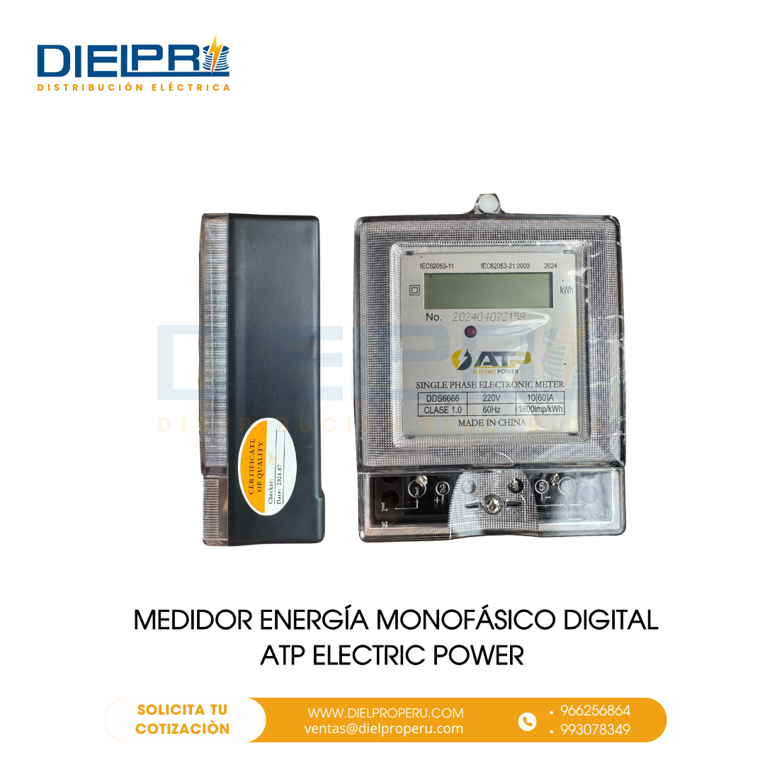 El Medidor Digital Monofásico ATP Electric Power es un equipo confiable y preciso para el registro del consumo eléctrico en instalaciones residenciales o comerciales. Este modelo digital facilita una lectura clara y exacta del consumo en kWh, permitiendo una mejor gestión energética. Gracias a su diseño compacto y su tecnología de punta, es ideal para sistemas monofásicos de baja tensión.